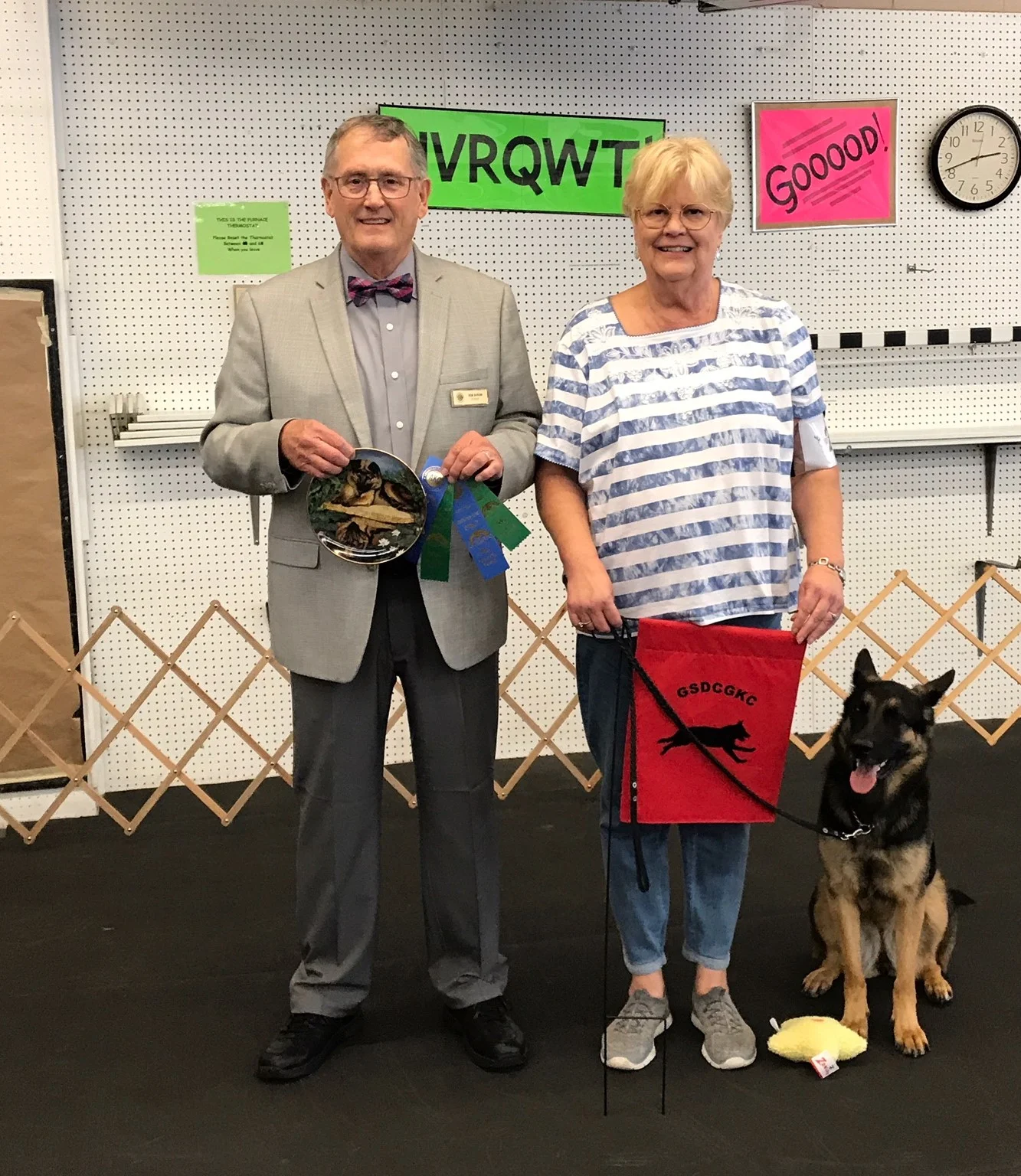 Highest Scoring GSD in Trial from Novice B, Tammy Peterson with Thunderpaws Miss Deja Vu, CD BH RN
